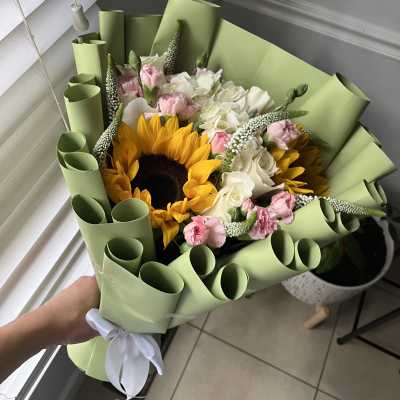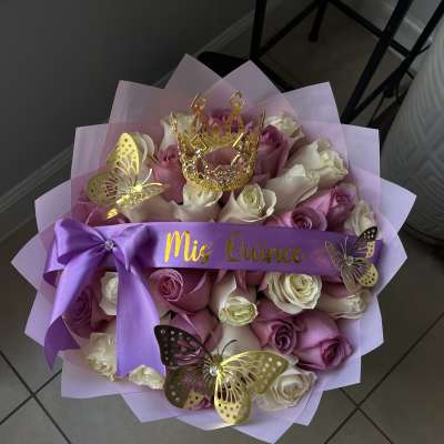 Attention: If the bouquet you're purchasing has a ribbon in the photo, you are able to customize your ribbon! Type your message in the "Card Message" section at checkout; max of 8 words for ribbon.