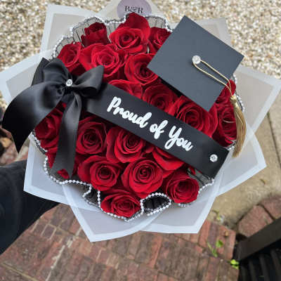 Attention: If the bouquet you're purchasing has a ribbon in the photo, you are able to customize your ribbon! Type your message in the "Card Message" section at checkout; max of 8 words for ribbon.
